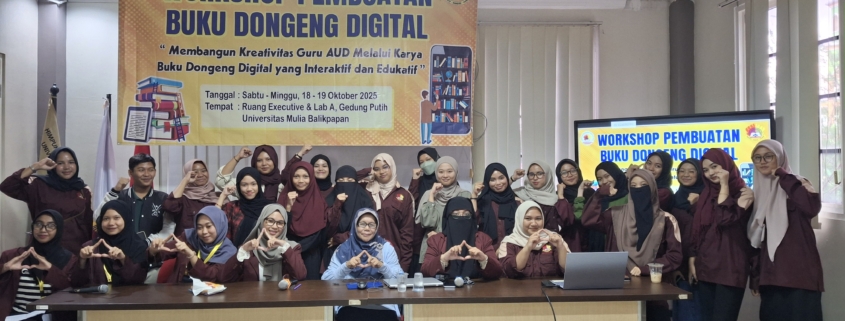Balikpapan, 20 Oktober 2025– Di tengah derasnya arus digitalisasi yang mengubah cara anak belajar dan berinteraksi dengan dunia, Program Studi Pendidikan Guru Pendidikan Anak Usia Dini (PG-PAUD) Universitas Mulia mengambil langkah berani: menyiapkan calon guru yang tidak hanya piawai bercerita, tetapi juga mampu menghadirkan dongeng dalam bentuk digital yang interaktif dan bernilai lokal.