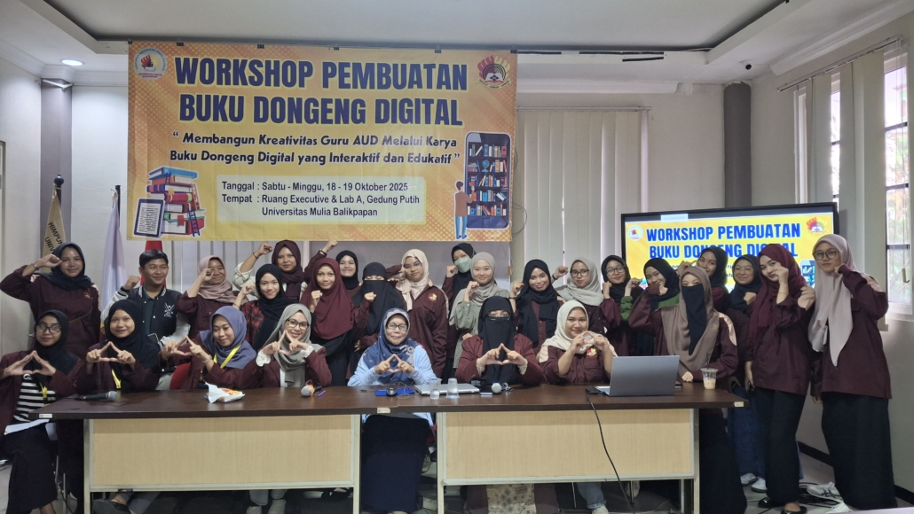 Balikpapan, 20 Oktober 2025– Di tengah derasnya arus digitalisasi yang mengubah cara anak belajar dan berinteraksi dengan dunia, Program Studi Pendidikan Guru Pendidikan Anak Usia Dini (PG-PAUD) Universitas Mulia mengambil langkah berani: menyiapkan calon guru yang tidak hanya piawai bercerita, tetapi juga mampu menghadirkan dongeng dalam bentuk digital yang interaktif dan bernilai lokal.