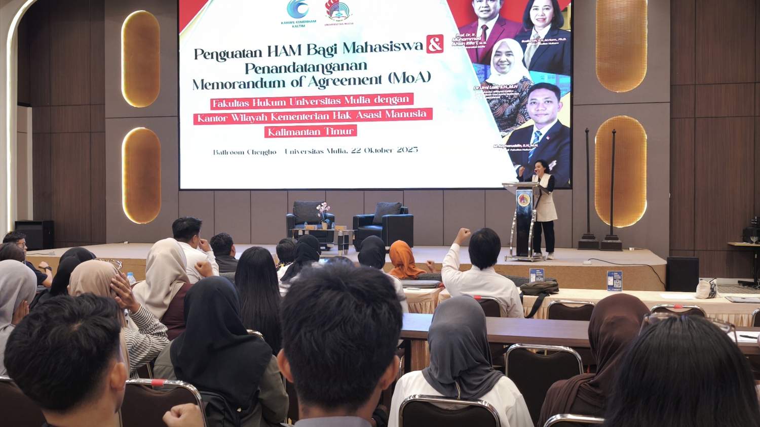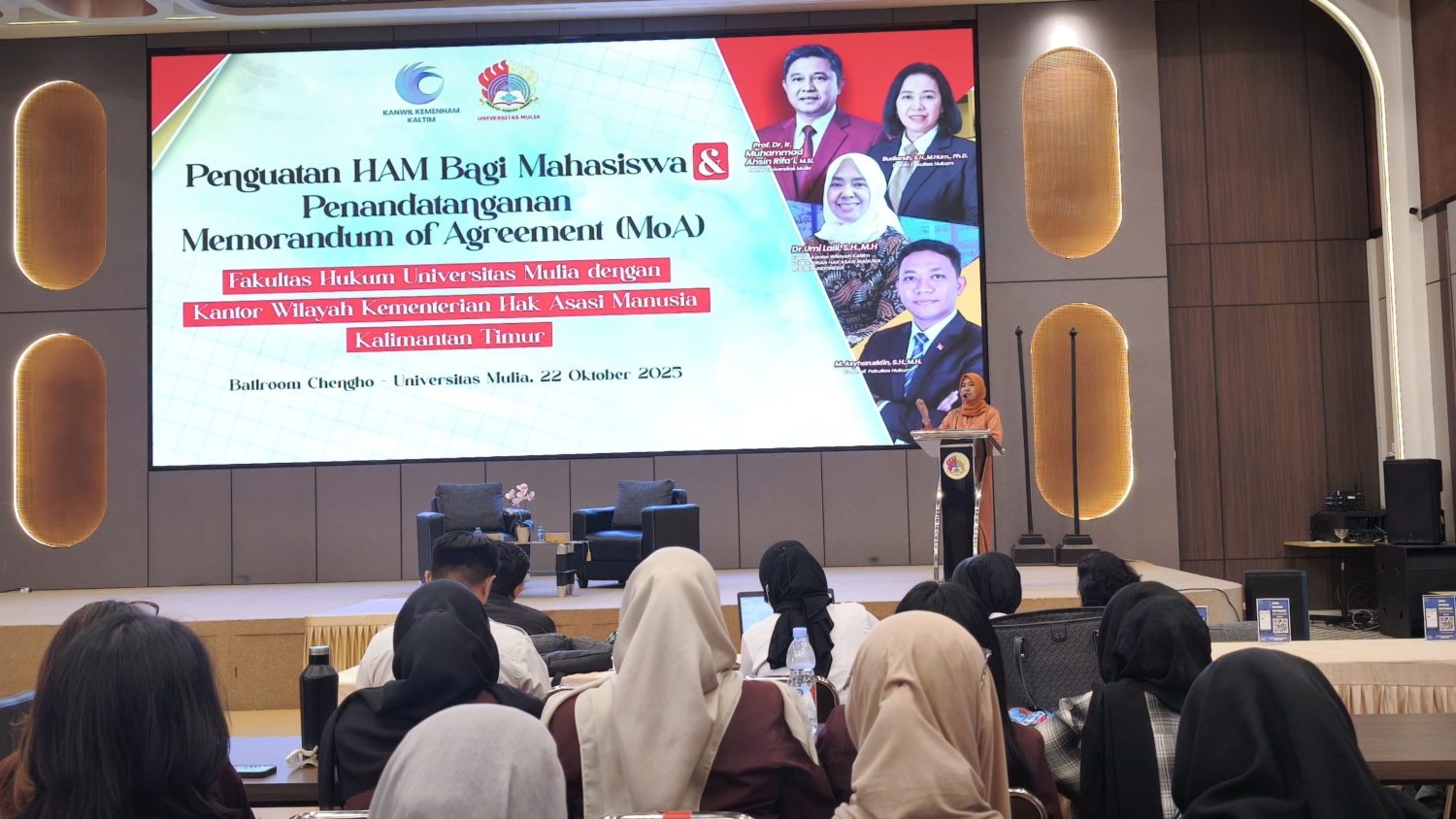Balikpapan, 22 Oktober 2025 – Kegiatan Penguatan Hak Asasi Manusia (HAM) bagi Mahasiswa yang digelar oleh Fakultas Hukum Universitas Mulia bersama Kantor Wilayah Kementerian HAM Kalimantan Timur menjadi ruang refleksi penting bagi pengembangan keilmuan hukum di lingkungan kampus.