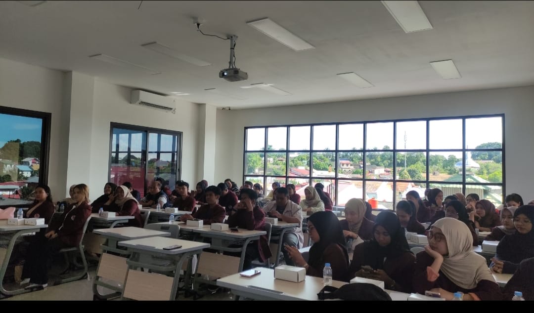 Suasana pelatihan, para mahasiswa Program Studi Manajemen dengan antusias menyimak pemaparan narasumber mengenai pedoman penulisan skripsi.