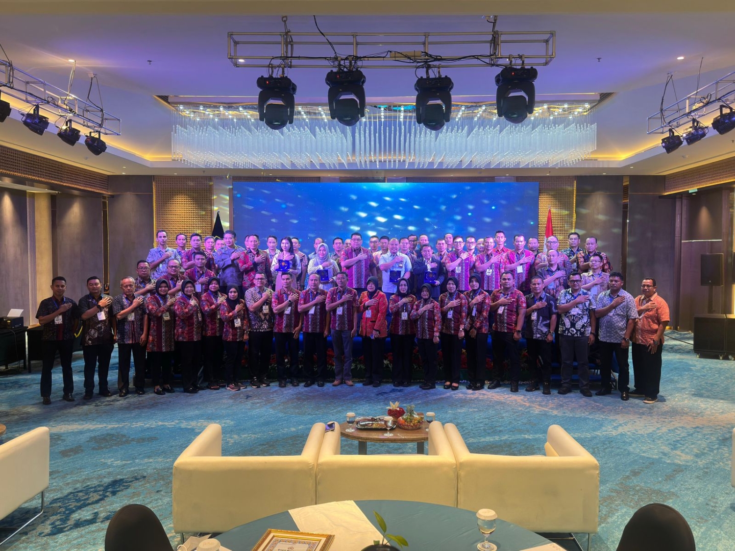 Para narasumber dan peserta Post Assessment Center Polda Kalimantan Timur Tahun Anggaran 2025 berfoto bersama usai sesi pembekalan di Hotel Grand Jatra Balikpapan.