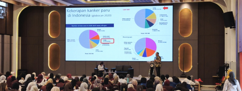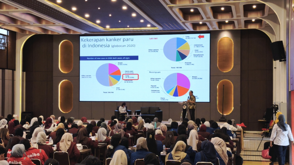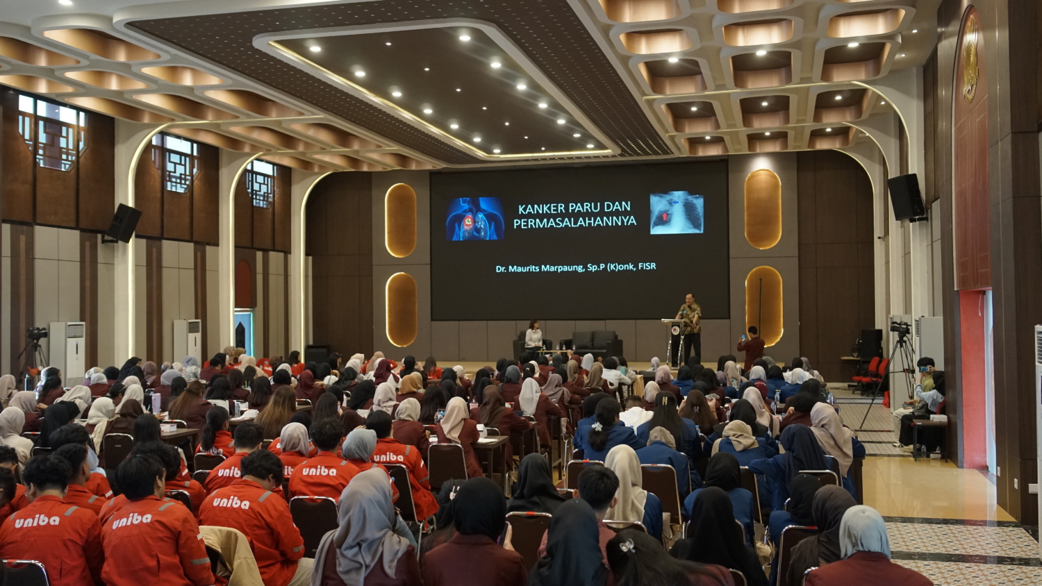 dr. Maurits Marpaung, Sp.P(K) saat memaparkan materi dengan fokus pada aspek pulmonologi serta pengaruh faktor lingkungan terhadap risiko kanker.