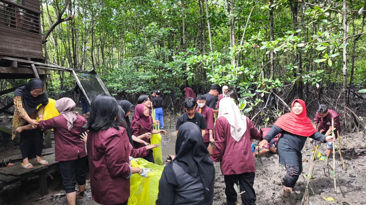 Dalam kegiatan yang dimulai sejak pukul 08.00 WITA Kamis pagi ini, mahasiswa bersama warga Kelurahan Margomulyo membersihkan kawasan hutan bakau dan menanam ratusan bibit mangrove. Selain menjadi praktik kepedulian terhadap alam, kegiatan ini juga menjadi media pembelajaran lintas mata kuliah yang menumbuhkan kesadaran ekologis, sosial, dan spiritual secara terpadu.