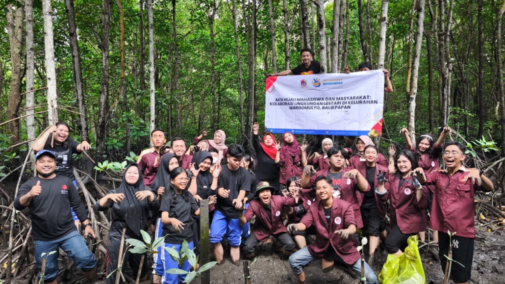 Dalam kegiatan yang dimulai sejak pukul 08.00 WITA Kamis pagi ini, mahasiswa bersama warga Kelurahan Margomulyo membersihkan kawasan hutan bakau dan menanam ratusan bibit mangrove. Selain menjadi praktik kepedulian terhadap alam, kegiatan ini juga menjadi media pembelajaran lintas mata kuliah yang menumbuhkan kesadaran ekologis, sosial, dan spiritual secara terpadu.