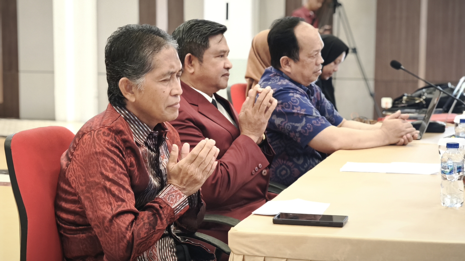 Direktur Eksekutif BPH Yayasan Airlangga, Dr. Agung sakti Pribadi, S.H., M.H. dan Rektor Universitas Mulia Prof. Dr. Ir. Muhammad Ahsin Rifai, M.Si. tampak memanjatkan doa dengan khusyuk sebelum dimulainya asesmen lapangan Akreditasi Institusi sebagai wujud harapan akan kelancaran dan kemudahan seluruh rangkaian kegiatan.