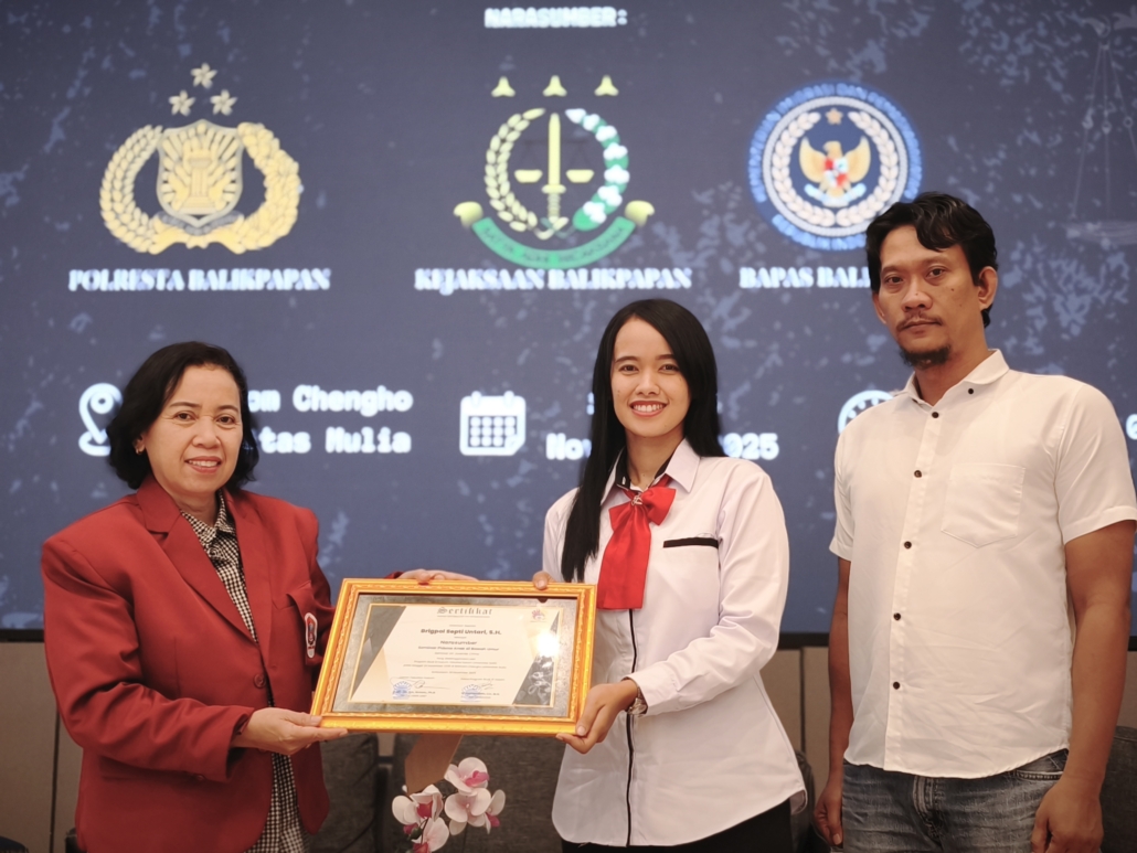 Balikpapan, 25 November 2025— Pada sesi materi pertama Seminar “Crimes Against Minors” Fakultas Hukum Universitas Mulia, Brikpol Sefti Untari dari Unit Pelayanan Perempuan dan Anak (PPA) Polresta Balikpapan memaparkan secara rinci bentuk, landasan hukum, penanganan, serta upaya pencegahan tindak pidana terhadap anak di bawah umur. Hadir mendampingi beliau, Bripka Suarsono, S.H., yang turut serta dalam sesi tanya jawab.