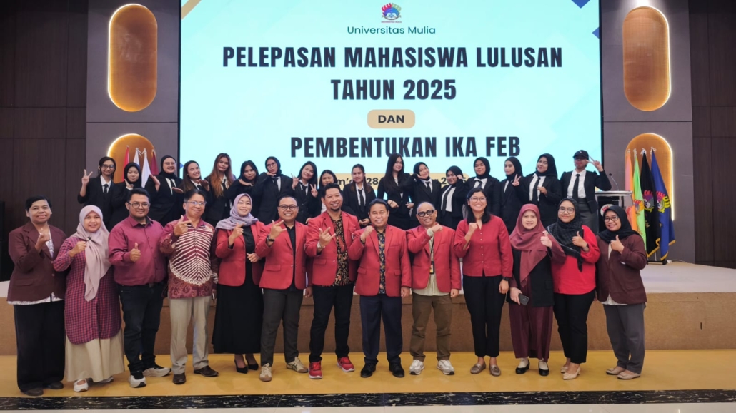Balikpapan, 1 Desember 2025 — Fakultas Ekonomi dan Bisnis (FEB) Universitas Mulia telah melaksanakan prosesi Pelepasan Lulusan Sarjana (S1) Program Studi Manajemen dan Program Studi Akuntansi pada Jumat, 28 November 2025, bertempat di Ballroom Cheng Hoo Universitas Mulia. Acara berlangsung khidmat dan penuh antusiasme dengan diikuti 98 lulusan, terdiri dari 76 lulusan Program Studi Manajemen dan 22 lulusan Program Studi Akuntansi. Kegiatan ini sekaligus menjadi momentum penting bagi fakultas melalui pembentukan Ikatan Alumni Fakultas Ekonomi dan Bisnis (IKA FEB) periode 2025–2027.
