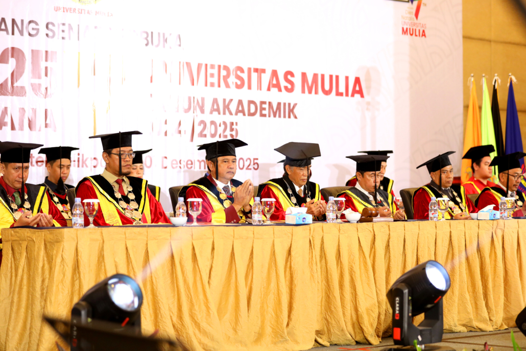 Balikpapan, 1 Desember 2025 — Universitas Mulia menyelenggarakan Wisuda ke-7 Tahun 2025 pada Senin, 1 Desember 2025 di Hotel Novotel Balikpapan. Acara dihadiri jajaran Pembina, Pengurus, dan Badan Pengelola Harian Yayasan Airlangga, perwakilan Pemerintah Kota Balikpapan, pimpinan perguruan tinggi, serta orang tua wisudawan. Dalam sambutannya, Rektor Universitas Mulia menyampaikan uraian komprehensif mengenai capaian institusi, profil lulusan, serta arah pengembangan kompetensi di era teknologi digital dan kecerdasan buatan.