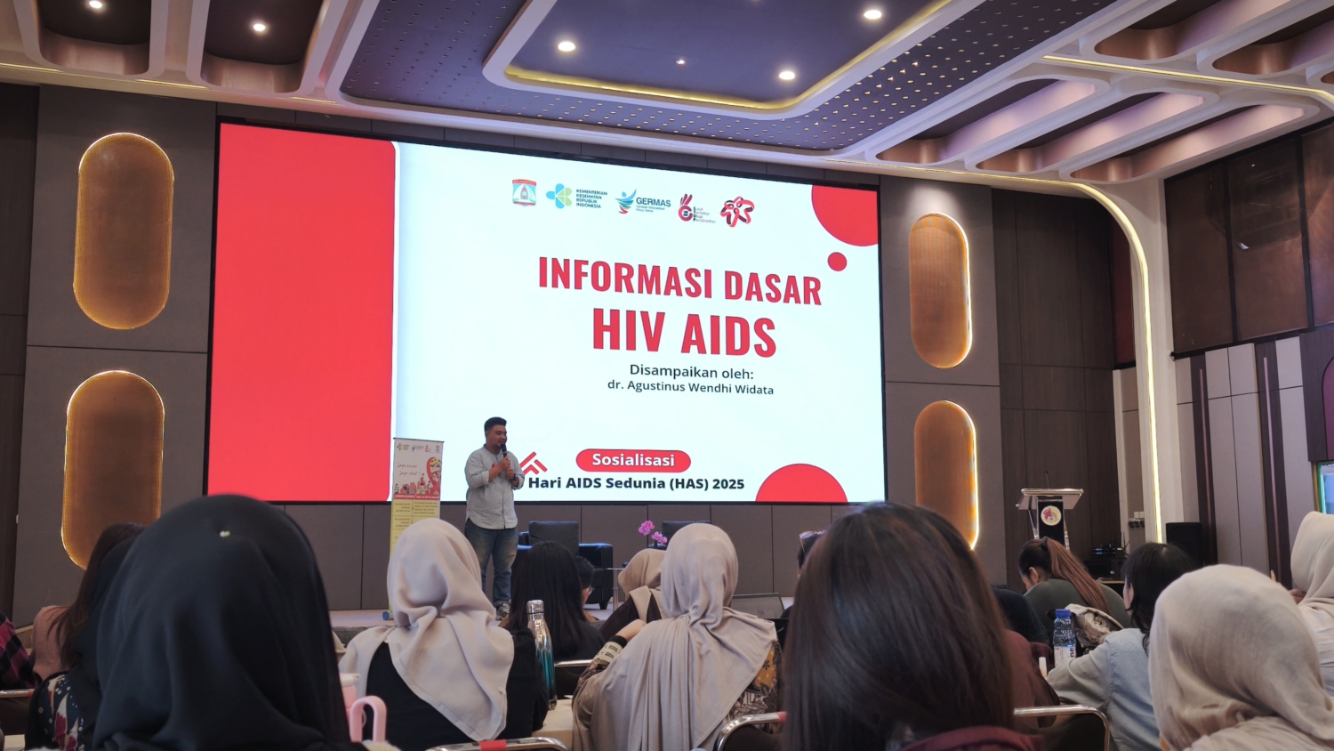 dr. Agustinus Wendhi Widata memaparkan informasi dasar HIV/AIDS, membuka sesi dengan penjelasan yang menempatkan mahasiswa pada konteks epidemi yang sebenarnya.