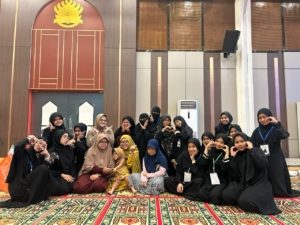Wahyu Nur Alimyaningtias, S.Kom., M.Kom., Pembina UKM LDK Al-Izzah UM, berfoto bersama para aktivis akhwat usai aksi solidaritas kampus.