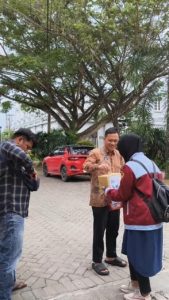 Seorang dosen menyerahkan donasinya kepada aktivis LDK Al-Izzah di area parkir kampus sebagai wujud kepedulian.