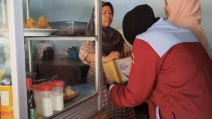 Seorang ibu kantin menyumbangkan donasi yang diterima oleh aktivis LDK Al-Izzah UM sebagai bagian dari aksi peduli bencana Sumatra.
