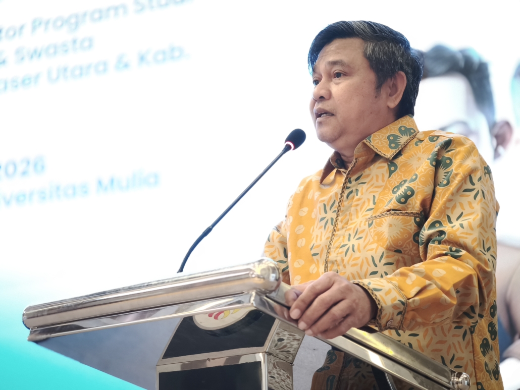 Balikpapan, 2 Februari 2026 — Rektor Universitas Mulia, Prof. Dr. Ir. Muhammad Ahsin Rifai, M.Si., menyampaikan sambutan dalam kegiatan Sosialisasi Program Gratis Pol Pemerintah Provinsi Kalimantan Timur yang berlangsung di Ballroom Cheng Hoo Universitas Mulia Kamis kemarin, 29 Januari 2026. Dalam forum tersebut, ia menegaskan posisi strategis kebijakan pendidikan gratis daerah dalam mendukung agenda nasional menuju Indonesia Emas 2045.