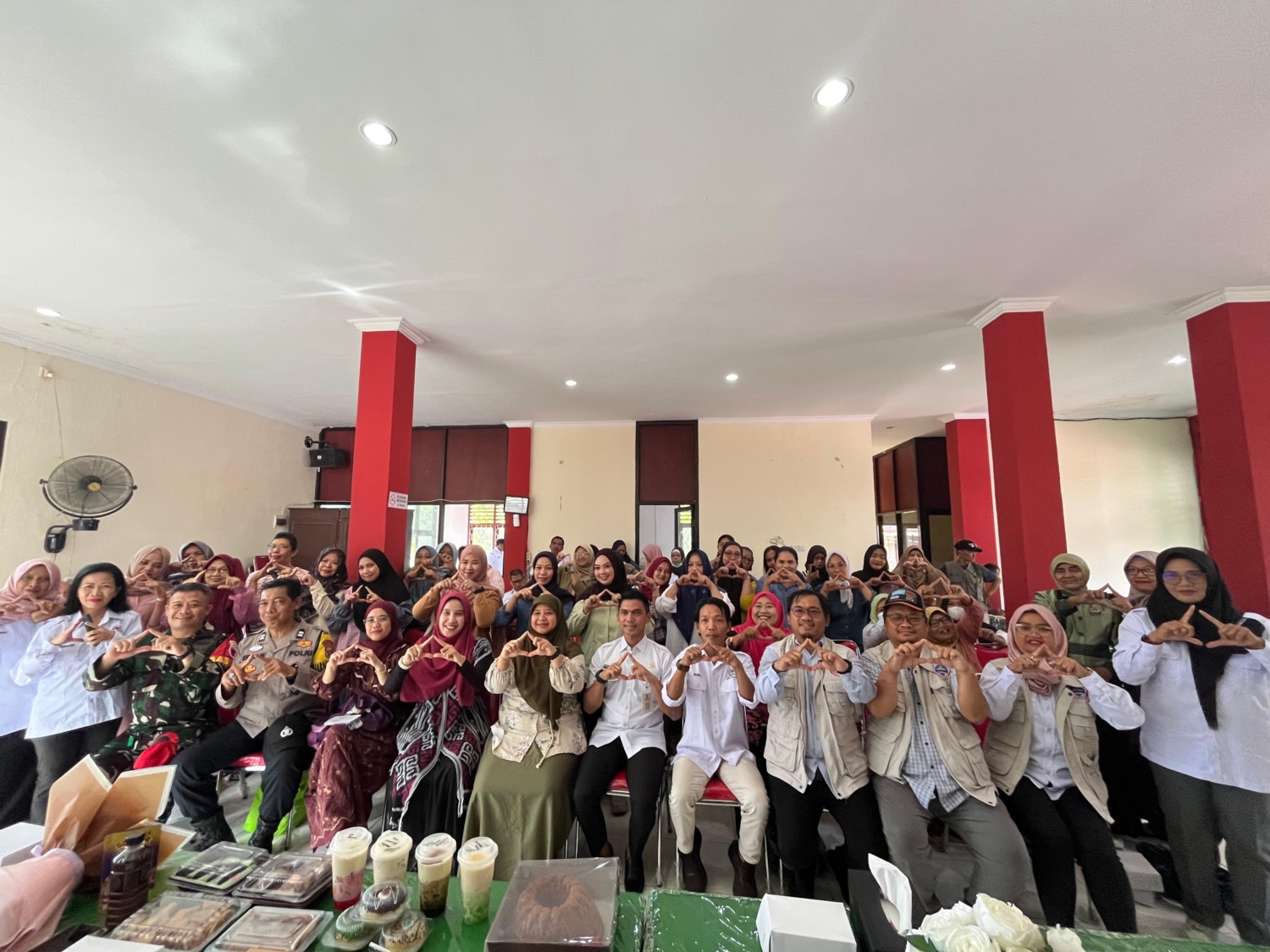 Para narasumber, Lurah Gunung Sari Ulu, Babinkamtibmas, Babinsa, dan perangkat kelurahan berpose bersama peserta pelatihan dengan gaya simbol “UM, Mulia, dan Jaya” sebagai penanda semangat kolaborasi.