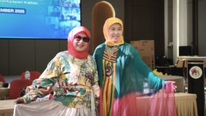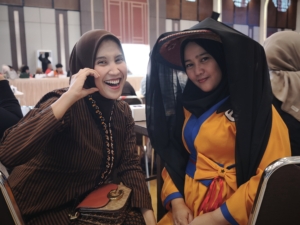 Ketua Yayasan Airlangga, Mulia Hayati Devianti, S.E., berpose bersama sang adik, Indah Sukmawati mengenakan busana Putri Kashmir , menghadirkan nuansa elegan dalam kebersamaan keluarga yayasan.