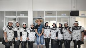 Karyawan dan guru SMK TI Airlangga Samarinda berpose dengan pakaian unik sebagai simbol semangat kolektif dan kebersamaan dalam refleksi akhir tahun.