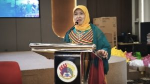 Ketua Yayasan Airlangga, Mulia Hayati Devianti, S.E., menyampaikan sambutan reflektif dengan balutan busana Putri Kashmir di akhir tahun 2025.